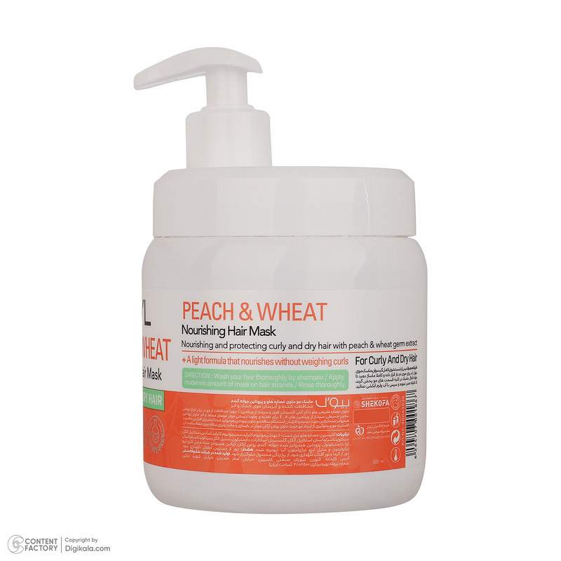 سایر توضیحات حاوی عصاره هلو با اثر آنتی‌اکسیدانی قوی و سرشار از ویتامین C جهت محافظت از مو در برابر انواع عوامل مخرب محیطی/ سرشار از ویتامین A و E برای تغدیه و رطوب‌رسانی موثر موهای مجعد و فر/ حاوی پروتئین هیدرولیز شده گندم و کراتین جهت ترمیم و افزایش استحکام ساقه و افزایش خاصیت الاستینه مو/ جلوگیری از ایجاد موخوره/ حاوی روغن آرگان موثر در بازسازی و حالت‌پذیری ساقه مو و حفظ سلامت آن.